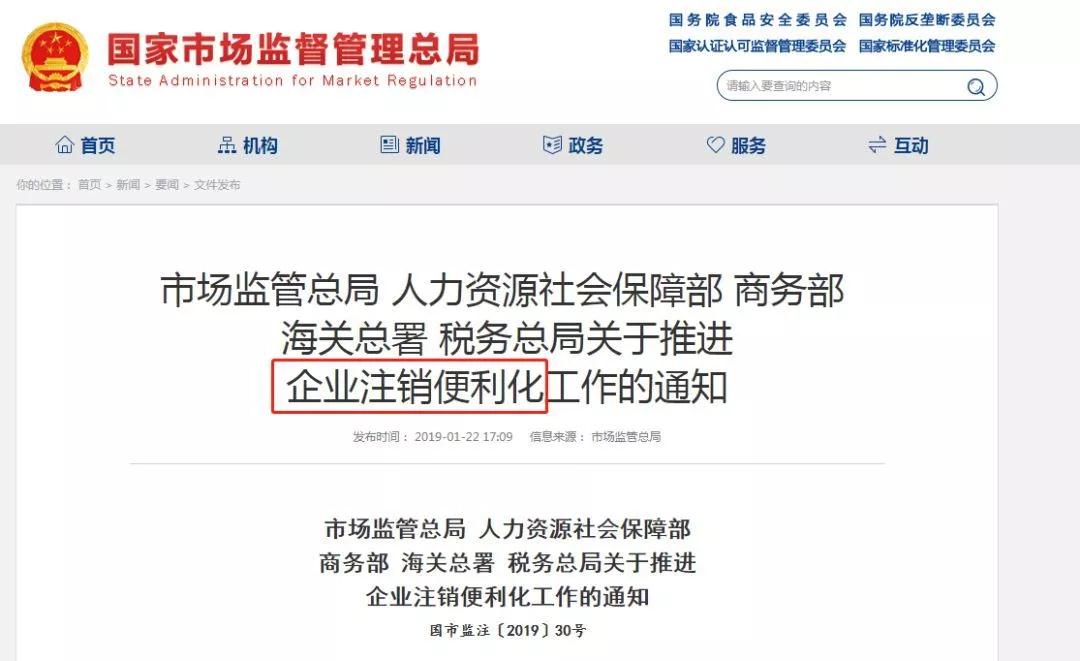 今年年初,市場監(jiān)管總局 人力資源社會保障部 商務部 海關總署 稅務總局發(fā)布通知,在2019年9月1日前,全國實現企業(yè)注銷“一網”服務。企業(yè)無需再提交清算組備案的4份材料,將公告時間由45天壓縮至20天、清稅手續(xù)免辦服務等等,無不讓注銷更簡化了!