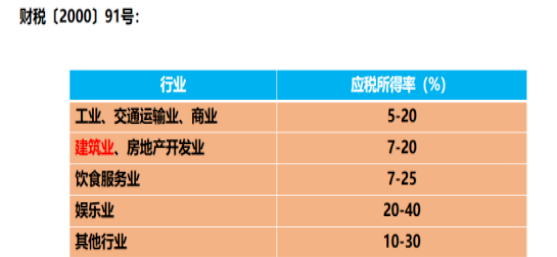 應(yīng)納稅所得額=收入總額X應(yīng)稅所得率或=成本費(fèi)用支出額/(1-應(yīng)稅所得率)X應(yīng)稅所得率應(yīng)稅所得率應(yīng)按下表規(guī)定的標(biāo)準(zhǔn)執(zhí)行: