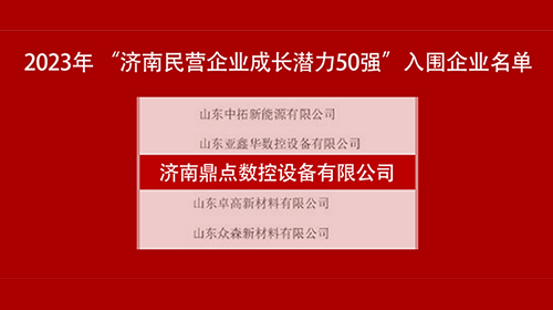近日,濟南市民營經濟發展局發布“濟南民營企業成長潛力50強”名單。濟南鼎點數控設備有限公司(以下簡稱“鼎點激光”)憑借高速發展,創新潛能等方面的優異表現成功入圍“濟南民營企業成長潛力50強”榜單。