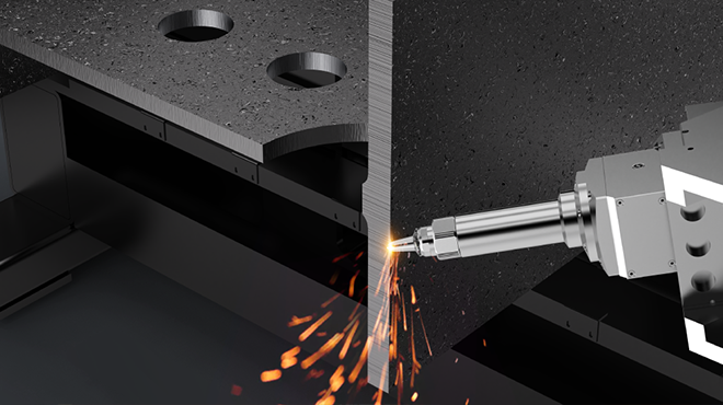 采用三維五軸型材切割專用的AB軸設計,能很好的進行轉動,A軸可±90旋轉,B軸可±90旋轉。固定于側面便于板材坡口加工。