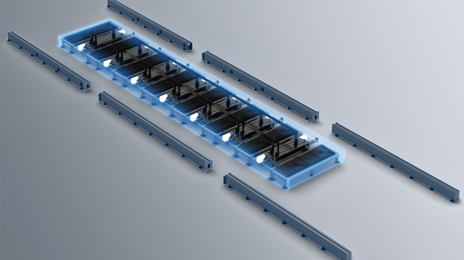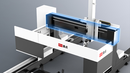 型材支撐機構,可氣動對齊,自動化程度高,模塊化設計,可自由調配。床身為地軌式結構,分段拼接,便于大幅面設計與運輸,和工作臺分體設計,減少設備損害。