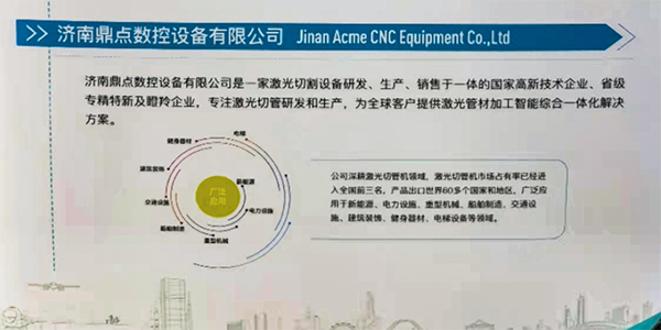 濟南鼎點數控設備有限公司(鼎點激光)創立于濟南新舊動能轉換起步區,是起步區先進制造企業之一,受起步區政府邀請參加此次展覽會。