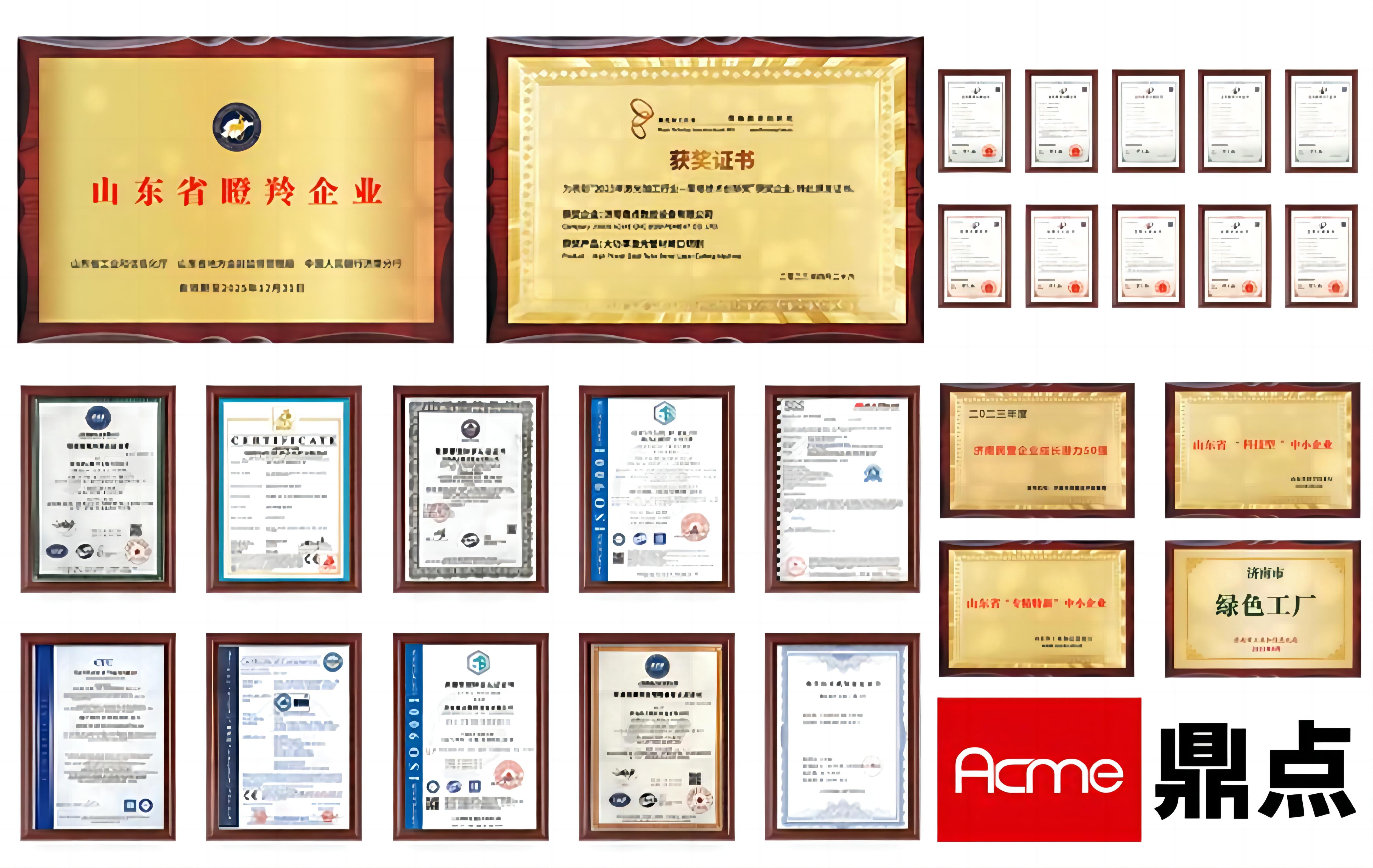 鼎點激光作為激光切管機專業制造商,憑借過硬的產品質量贏得良好的市場信譽,成為行業領頭羊企業。自主研發的大功率激光管材坡口切割設備經山東省機械工業科學技術協會組織專家評審鑒定,產品主要性能指標達到國際先進水平,打破國外產品壟斷,進一步提高我國重大裝備的國產化率,使我國激光切管機不再受“卡脖子”限制,對推動我國裝備制造事業的發展具有深遠意義。