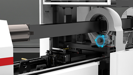 自主研發的伺服跟隨式支撐系統,對各種管材可自定心,大小管全尺寸 都能勝任;高密度成組式支撐,承重性強;能夠根據管材轉動時的高度 實時調整高度,實現切割過程中的完美貼合,保證切割精度