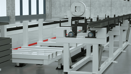 送料小車通過地軌將管材送達(dá)料區(qū),機械臂抓取工件到隨動裝置它的單組托舉力300公斤,可托舉邊長260mm以內(nèi)工件完成切割后,磁鐵起吊將工件吊至翻料機構(gòu)自動化翻面起吊能力設(shè)定為300kg,可吸附面寬度≥80mm機械臂自動碼料,小車沿鐵送往工件吊裝區(qū)域。